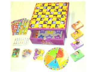 Fantastic for rainy afternoons, or just a family game night! This 8 in 1 game table includes: Checkers, dominoes, bingo, old maid, go fish, memory, crazy eights, and tic-tac-toe. Also includes a bonus figure of Dora and Swiper for more fun! Game table box measures 13" square by 6" high, made of wood. All pieces store neatly inside the drawer. This will last for years! A great gift! Note: Because of the weight, there is an additional shipping charge.