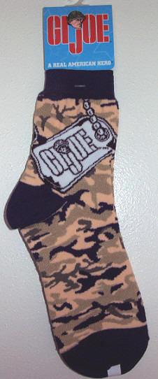 GO JOE! GI Joe socks in camo! Tans and Navy. Tag with GI Joe logo on top. Shoes sizes 6 - 11.5 and 4 - 10.